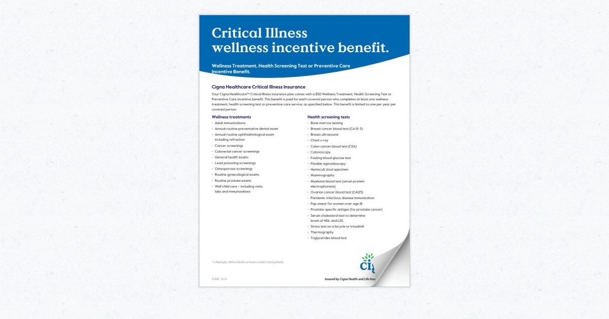 2024 Wellness Incentive Benefit for Cigna Critical Illness , Work with cigna's personal health team to make progress toward your personal health goals (i.e., nutritional counseling, tobacco cessation, weight.